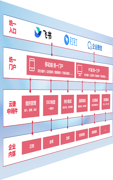 对协作平台提供支持服务,,支持企业应用与协作平台对接,,,,包含组织同步、、、、消息集成、、、、待办集成等。。。支持目前主流的协作平台:钉钉、、企微和飞书。。。