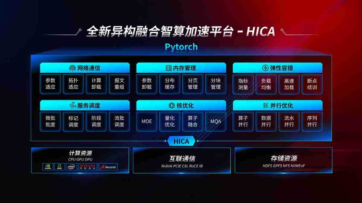 通过自研的服务层、、、中间适配层、、、、以及调度编排算法,,,,采用数据并行、、模型并行等多种并行方式,,把并行计算任务进行有效的分解,,,使其分别由相应的软件栈和算力资源来承接。。。。当GPU资源变化,,,,HICA可以实时动态调度计算子任务并调整模型拓扑和架构,,以充分聚合各种算力资源。。。。